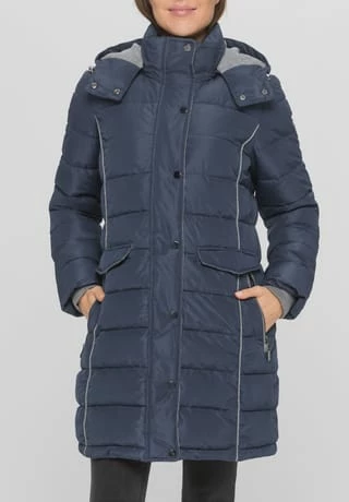 Modisch und unkompliziert ist dieser Damen-Steppmantel aus dem Sortiment von adagio. Geprägt ist der Look von dem unifarbenen Design und dem geraden Schnitt. Die praktische Kapuze und der verdeckte Reißverschluss schützen vor eindringender Nässe und Kälte. Details wie die beiden Taschen mit Patte runden den Style gekonnt ab.