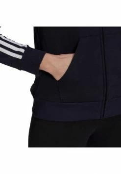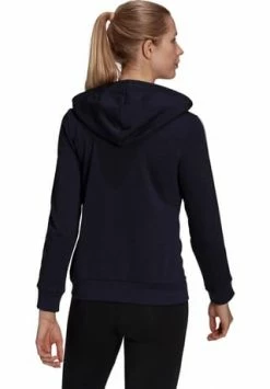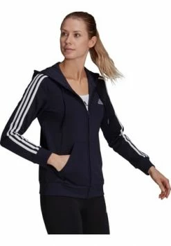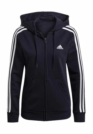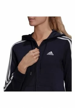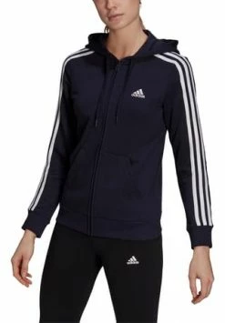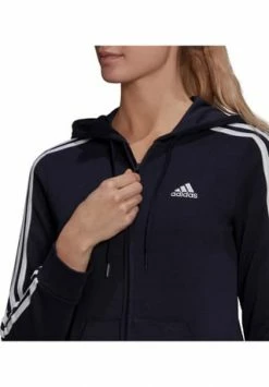Melierte Sweatjacke mit klassischem 3-Streifen-Design an den Ärmeln; durch Kordelzug verstellbare Kapuze; durchgehender Frontreißverschluss; 2 Eingrifftaschen; Abschlüsse mit Rippbündchen; Logo auf der Brust; mit Recyclingmaterial und nachhaltiger, von der Better Cotton Initiative zertifizierter Baumwolle hergestellt; Material 53% Baumwolle, 36% Polyester (recycelt), 11% Viskose.