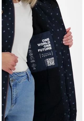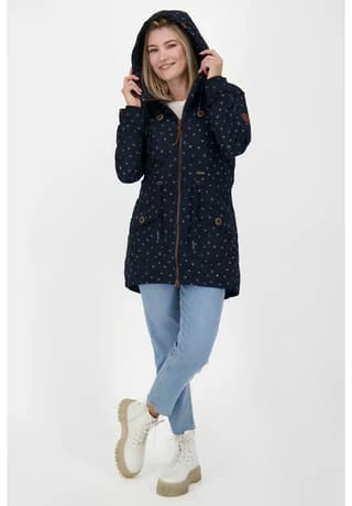 Ein toller Eyecatcher für den Winter und zudem noch absolut vielseitig einsetzbar – CharlotteAK B die neue Damenwinterjacke von Alife and Kickin macht so Einiges her! Egal ob Du Outdoor oder in der City unterwegs bist – mit dieser Winterjacke für Damen ist Dein Style immer perfekt. Die lange, warm gefütterte Damenjacke im Parka Style überzeugt durch ihre figurnahe Schnittform mit regulierbarem Kordelzug in der Taille und farblich abgesetzten Markendetails wie die Zierknöpfe in Holzoptik mit Alife and Kickin Schriftzug. Zwei runde Taschen, die mit Klettverschluss geschlossen werden können, schmücken die Front der gemusterten Jacke für Damen und gewähren viel Platz für Schlüssel, Handy und Co. Bei Wind und Wetter sorgen elastische Bündchenabschlüsse, das kuschlige Teddyfleece-Innenfutter und die regulierbare Tunnelzugkapuze für maximalen Tragekomfort. Lass Deinen Vorlieben Freiraum – CharlotteAK B der universelle Winterparka von Alife and Kickin ist immer mit am Start.
