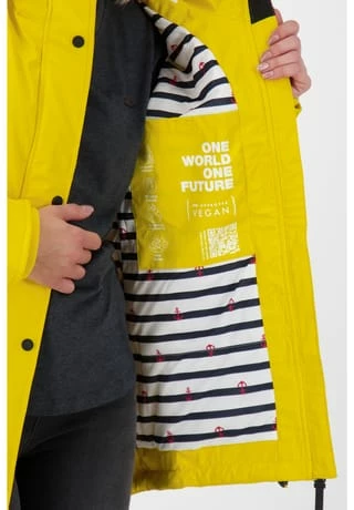 Unsere neue Winterjacke ElmaAK A ist am liebsten in freier Natur unterwegs. Sei es zum gemütlichen Spaziergang mit dem Hund oder auf Entdeckertour mit Freunden! Die Damenjacke im Stil eines Friesennerzes besteht aus wiederstandsfähigem und abwaschbarem Obermaterial und lässt Dich garantiert nicht im Stich, auch wenn Du mal ein bisschen länger unterwegs bist. Die Kapuzenjacke ist warm gefütterte und sorgt damit für ein angenehmes und kuschliges Tragegefühl. Dank eines praktischen durchgehenden Reißverschlusses, der zusätzlich durch eine Sichtblende mit Klettverschluss geschützt ist, kannst Du die Winterjacke für Damen super leicht an- und ausziehen. Eine große Kapuze mit stufenlos regulierbarem Tunnelzug schützt Dich wenn es mal richtig ungemütlich wird. Die beiden äußeren Eingriffstaschen können mit Klettverschluss verschlossen werden und bieten ausreichend Platz für Smartphone & Co. Liebevolle Labeldetails wie Ärmelpatch, Logo-Knöpfe und kleine versteckte Botschaften warten darauf, von Dir entdeckt zu werden. Worauf wartest Du also noch – ElmaAK A von Alife and Kickin, die Damenwinterjacke für viel Zeit in freier Natur.