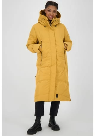 Absolut stylisches It-Piece! Der lange gefütterte Mantel JunaAK von Alife and Kickin mit geradem Schnitt und modischer Steppung. Der lange Damenmantel ist nicht nur ein modisches Muss in jedem Kleiderschrank sondern auch ein absolut praktisches Kombiteil. Die wattierte Kapuze und der hochschließende Kragen halten Dich im Winter vor Wind und Wetter geschützt. Das qualitativ hochwertige Obermaterial eignet sich perfekt für lange Spaziergänge im Freien wobei die ultraleichte warme Wattierung und das kuschlige Teddyfell-Innenfutter des Steppmantels für höchsten Tragekomfort sorgen. Seitlich befinden sich große dekorative Reißverschlusstaschen die mit Labelflag in schwarz weiß Optik versehen sind. Ein 2-Weg Zip beschert Dir ultraschnelles An-und Ausziehen, mit der praktischen Druckknopfleiste an beiden Seiten der Winterjacke kannst Du Deine Beinfreiheit optimieren. Kombiniere die lange Damenwinterjacke im Parka Style ganz up to date mit Strickcap, Jeans und Boots. Wenn es mal etwas feiner werden soll, bist Du mit einem schmalen Midi- Strickkleid bestens beraten. Der Steppmantel JunaAK von Alife and Kickin – Dein absolutes Must have für die kommende Saison!
