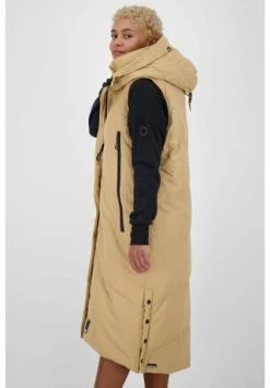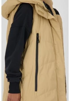 Super praktisch, funktional und modisch zugleich ist die lange Damenweste JuneAK A von Alife and Kickin. Besonders im Herbst und im Winter bei einem Spaziergang durch die Natur oder zum Bummeln in der Stadt ist eine Steppweste die perfekte Alternative zur Jacke. Und dabei ist sie noch super zu kombinieren. Toll macht sich die Weste für Damen über einem Pullover, Hoodie oder einer Strickjacke, dazu ein dicker Schal und Du bist in der Übergangszeit bestens gekleidet. Im Winter kann man sie als zusätzlich wärmende Schicht über der Winterjacke tragen. Die Steppweste für Damen hat einiges zu bieten – eine voluminöse Kapuze zum Schutz vor unsteten Wetterlagen, innenliegende gefütterte Fronttaschen mit Reißverschluss zum unterbringen Deiner Essentials, eine gerade Schnittform für einen extra lässigen Look und individuell verstellbare Seitenschlitze für mehr Beinfreiheit. Speziell bei Outdooraktivitäten profitiert man von der Armfreiheit der Weste und ihrer warm gefütterten Qualität. Zudem verleiht die unifarbene Optik jedem Outfit eine tolles Finish. Absolut praktisch, funktional und trendy zugleich – JuneAK A die brandneue lange Damensteppweste von Alife and Kickin. Jede Frau sollte in dieser Saison eine haben!