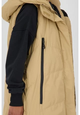 Lange Steppweste in gerader Schnittform mit verstellbaren Seitenschlitzen für mehr Beinfreiheit