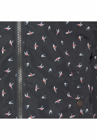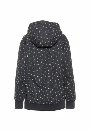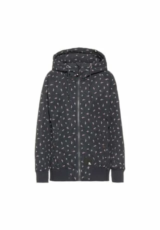 Kapuzenjacke aus Recyclingmaterial; feste Kapuze mit Kordelzug; durchgehender Frontreißverschluss mit Kinnschutz; hochabschließender Kragen; Arm-und Saumabschlüsse mit Rippbündchen; 2 seitliche Eingriffstaschen mit Drucknopfverschluss; Textilfutter; 1 Innentasche mit Klettverschluss; vegan; Material 100% Polyester (recycelt).
