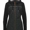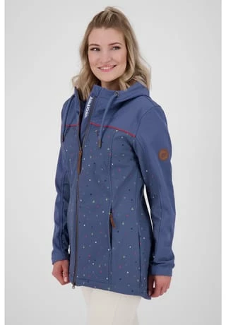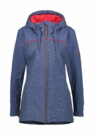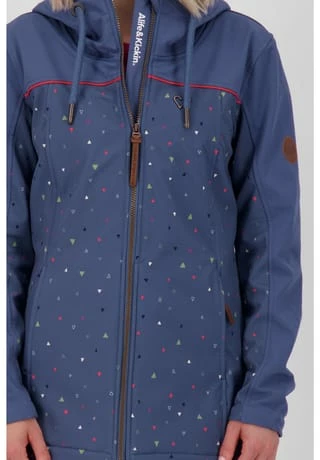 Die lange Übergangsjacke in Softshellqualität LoreneAK B von Alife and Kickin bietet Dir bei jeder Wetterlage einen stilsicheren Look. Der zuckersüße Alloverprint und die figurumspielende, hinten leicht verlängerte halbrunde Form sind verantwortlich dafür. Der hohe Kragen mit Kinnschutz und die große Wohlfühlkapuze mit Logopatch sorgen für einen lässigen Auftritt und verleihen der Trägerin dieser Damenjacke für die Übergangszeit zusätzlichen Schutz bei Wind und Wetter. Markentypische Details in Metall- und Lederoptik verleihen der formschönen Damenübergangsjacke den letzten Schliff. Aber dem nicht genug – auch mit funktionellen Details kann LoreneAK B punkten – die verstellbaren Kordeln in der Kapuze, der innenliegende Gummizug mit Stoppern im Saumbereich und die seitlichen Eingriffstaschen mit Zip-Verschluß bieten zusätzlichen Komfort. Zudem sorgt die hochwertige Softshellqualität und das softe Fleeceinnenfutter dieser Übergangsjacke für Damen für ein optimales Tragegefühl. Du wirst sie lieben – LoreneAK B von Alife and Kickin.