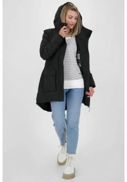 Vegan hergestellter Parka mit wärmendem Teddyfutter; geräumige Kapuze mit Gummizug und Stopper; hochabschließender Kragen mit Klettverschluss; hinterlegter Frontreißverschluss mit Kinnschutz; Armabschlüsse mit innenliegenden Rippbündchen; 2 aufgesetzte, seitliche Taschen mit Klettverschluss; diverse Markendetails; leicht verlängertes und abgerundetes Rückenteil; Saumabschluss mit Gummizug und Stopper; 1 Innentasche; Taillierung durch innenliegendem Kordelzug für eine feminine Silhouette; Recyclingmaterial; Material 100% Polyester (recycelt).
