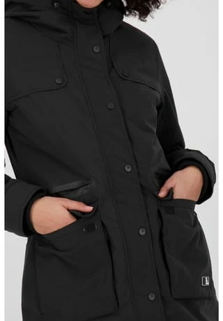 CharlotteAK A die warm gefütterte Winterjacke mit femininer Passform von Alife and Kickin. Egal bei welchem Wetter man unterwegs ist, die lange Damenjacke ist ein passender Begleiter in allen Lebenslagen. Mit ihrer etwas längeren Rückseite und ihrer kuscheligen Teddyfleece- Fütterung ist diese Winterjacke für Damen ein echtes Wohlfühlteil. Zudem begeistert sie mit praktischen Details: Die Rippstrickbündchen an den Ärmeln sorgen für eine perfekte Passform, die großen aufgesetzten Fronttaschen und die innenliegenden Zippertaschen bieten Platz für viele Kleinigkeiten, die gefütterte Kapuze ist mit einem stufenlos verstellbaren Gummizug versehen und bringt eine lässige Note in das Design dieser Must-have Jacke für den Winter. Detailverliebte Logoknöpfe in Metalloptik und das dezente Labeling schaffen optische Vollendung in Perfektion. Echt Stylisch – die Damenwinterjacke CharlotteAK A von Alife and Kickin.