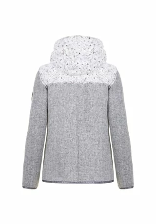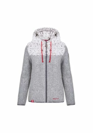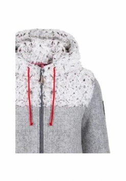 Melierte Kapuzenjacke mit hohem Wollanteil für ein angenehm warmes Tragegefühl; durchgehender Frontreißverschluss; Kapuze und Schulterpartie in markantem Design; kontrastfarbene Elemente; Labeldetails; Material I 80% Wolle, 20% Polyamid, Material II 100% Polyester.