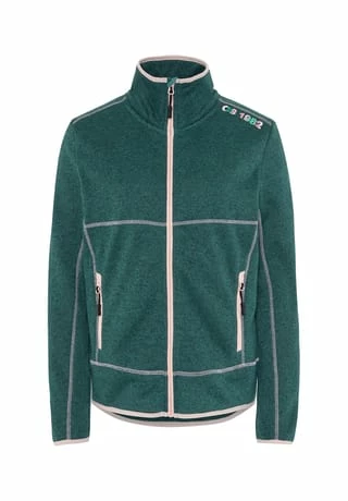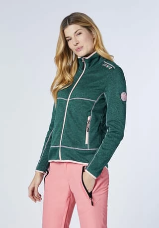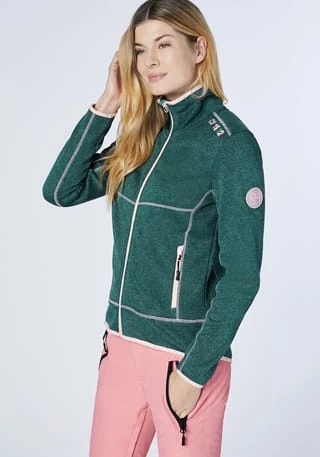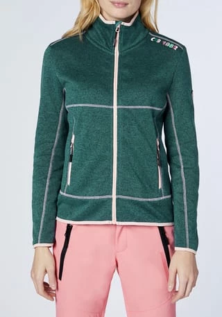 Die Sweatjacke von CHIEMSEE ist ein kuscheliger Allrounder, der sich perfekt in deine Garderobe eingliedern lässt. Der hochschließende Kragen mit Kinnschutz, die bequemen Seitentaschen sowie die behagliche Strickfleece-Qualität machen die Zipjacke zu einem absoluten Wohlfühlteil. Elastisch paspelierte Säume halten lästigen Wind wirksam auf Abstand. Die Fleecejacke kannst du geschlossen tragen, aber auch mit einem anliegenden Shirt kombinieren und offen lassen. Jeans und Sneaker runden den entspannten Freizeit-Look ab. Macht eine gute Figur: die Sweatjacke von CHIEMSEE.