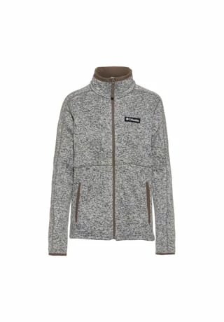 Melierte Jacke aus Fleece; Stehkragen; durchgehender Reißverschluss; 2 Reißverschlusstaschen; Abschlüss emit schmale Elastikbündchen; Label-Patch; Material 100% Polyester.