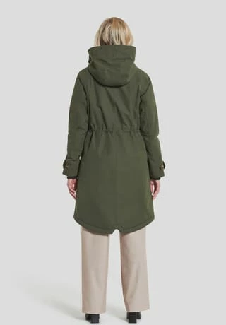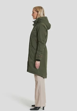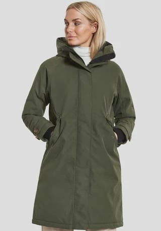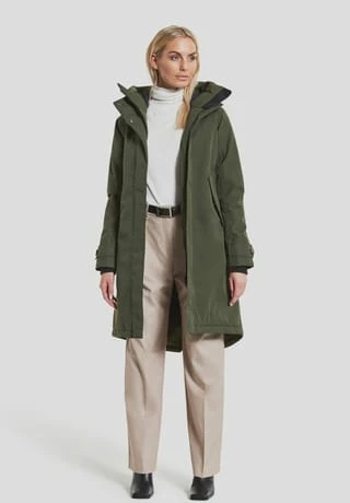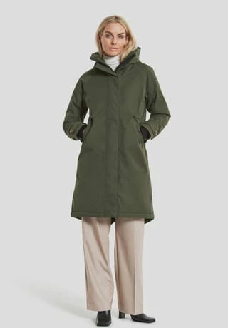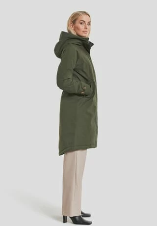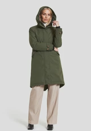 Longer parka in A-shape with cosy hood that shapes a nice collar when fold down. Designed for the person who is looking for a sophisticated parka with a nice back drop., SoftPolyester twill with a dull surface., Loose praka with backdrop and neat fit at shoulders. Regular fit., Reflective detail inside sleave to fold out when needed. News AW22