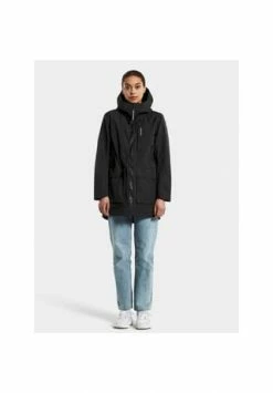Atmungsaktiver Parka mit fester, 2-fach verstellbarer Kapuze; 2-Wege-Frontreißverschluss mit Kinnschutz; 1 Brusttasche mit verdecktem Reißverschluss und 2 Pattentaschen; 1 Innentasche aus Mesh; innenliegender Taillenzug, leicht verlängerte Rückseite mit abgerundetem Saum; Rückenlänge ca. 88 cm bei Gr. 38; elastische Ärmelabschlüsse; wasser- und winddicht dank STORMsystem™; getapte Nähte; reflektierende Details; lösungsgefärbter ECO-Futterstoff; PFC-frei; Material I 100% Polyamid (50% recycelt), Material II 100% Polyester.