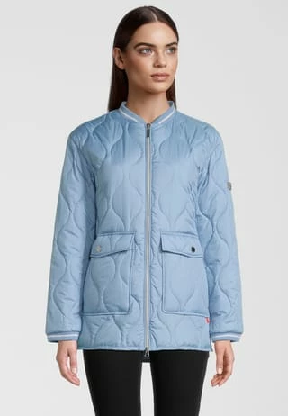 Die lange FRIEDA & FREDDIES-Steppjacke hat durch die vertikale Wellensteppung eine verspielte Oberfläche. Anhand der hochwertigen Qualität, hält die Jacke besonders an kalten Tagen warm. Ein besonders modischer Kragen im College-Style ist der Hingucker. Zwei geräumige Taschen mit Knopfverschluss, sowie seitlichem Eingriff runden das Modell ab, wärmen die Hände und lassen alle Wertsachen sicher verstaut. Auch offene Innentaschen zieren das Design und einen Schlüsselanhänger gibt es obendrein.