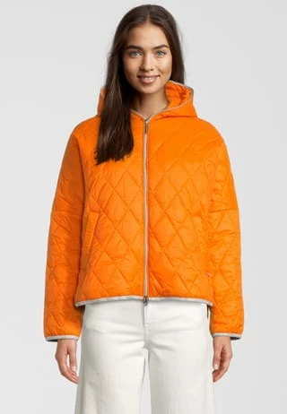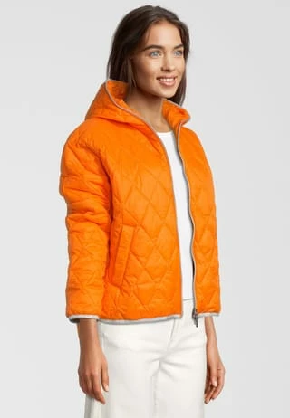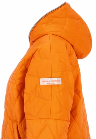 Die Jacke von FREIDA&FREDDIES überzeugt mit einer angesagten Stepp-Optik. Das gerade geschnittene Modell mit verlängerter Rückenpartie und Knöpfen am seitlichen Saum bekommt durch die Saumabschlüsse mit Glitzereffekt einen modernen Touch. Zwei seitliche Eingrifftaschen und eine große Kapuze runden den Look funktional ab.