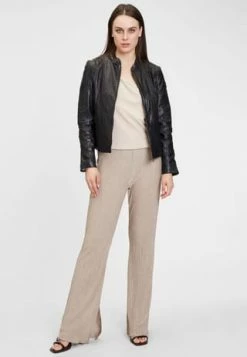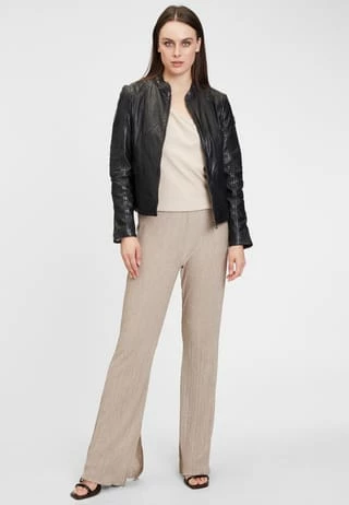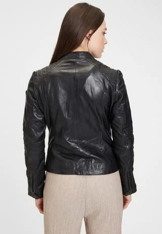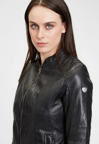 Ein zeitloses Design, überzeugend durch reduzierte Details – das ist das Modell GGJuana S22. Schon beim ersten Blick fällt die Lederjacke in die Rubrik Lieblingsteil und wird sich garantiert die erste Reihe an der Garderobe sichern. Der betont kurzgehaltene Schnitt wirkt durch gezielt eingesetzte Steppungen nochmal eine Spur taillierter und der kleine offene Stehkragen sowie verdeckte Reißverschlüsse am Ärmelabschluss stehen für eine Prise Raffinesse.
