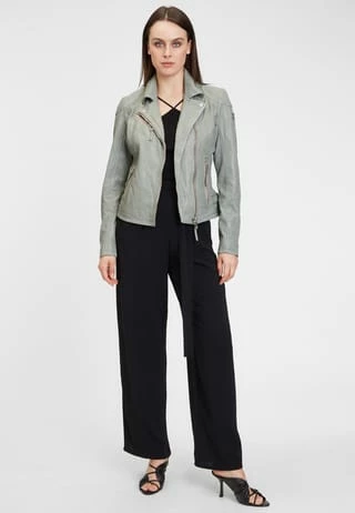 Auch in dieser Saison darf das beliebte PGG-Modell nicht fehlen. Typische und markant für des Jackendesign ist der voll im Trend liegende asymmetrische Reißverschluss, dazu glänzende Druckknöpfe am Kragenende, dezente Steppungen, Riegel am Bund und rückseitig mit Reißverschluss abschließende Ärmel. Dazu begeistert die frische sommerliche Farbgebung und schnell sind mit wenigen Handgriffen viele Outfitmöglichkeiten zusammengestellt.