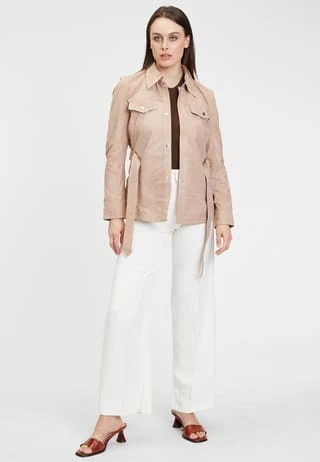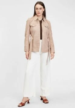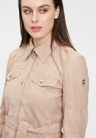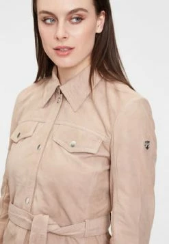 Dieser Kurzmantel lässt sich wie ein Hemd über Knöpfe an der Frontseite verschließen. Das Modell GWNajla besitzt einen Gürtel im Taillenbereich, der durch zwei seitliche Schlaufen nicht verrutschen kann und die Figur schön in Szene setzt. Die äußerliche Erscheinung wird durch die Knöpfe an den Ziertaschen und den Ärmelabschlüssen ideal abgerundet.