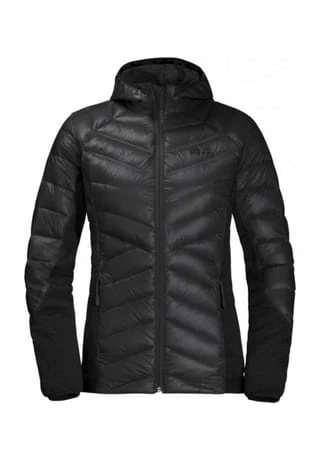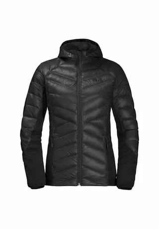 Das Stratosphere Jacket von JACK WOLFSKIN ist eine warme, winddichte Hybridjacke mit Daune und Stretch-Fleeceeinsätzen. Egal ob Langlauf oder Abfahrt – mit dem Stratosphere Jacket von JACK WOLFSKIN sind Sie bei aktiven Touren richtig ausgerüstet. Mit ihrer Füllung aus zertifizierter Entendaune wärmt die sportliche Hybridjacke richtig gut. Die ist nämlich nicht nur äußerst bauschkräftig, sondern auch wasserabweisend. Dafür sorgt eine spezielle Imprägnierung. Das winddichte und wasserabweisende Außenmaterial Stormlock schützt gleich doppelt. So hält das Stratosphere Jacket von JACK WOLFSKIN neben stürmischen Böen auch leichte Schauer problemlos aus. Auch wenn es mal sportlicher wird, genießen Sie immer perfekte Bewegungsfreiheit: dank der großflächigen Einsätze aus elastischem Fleece an den Seiten und den Unterseiten der Arme. Hybridjacke: winddicht, wasserabweisend, sehr warme Daunenfüllung, sehr atmungsaktiv, Flexionen, mit Kapuze, mit Packsack Stormlock Taffeta Shiny: winddichtes, wasserabweisendes und besonders glattes, glänzendes Gewebe mit hoher Atmungsaktivität Nanuk Dynamic Piqué: bi-elastisches Fleece mit Piqué-Struktur auf der Außenseite und melierter Optik HyperDry (Duck Down): wasserabweisende 90/10er-Entendaune (700 cuin Bauschkraft, PFC-frei, RDS-zertifiziert) Microguard (100 g/m²): warme Wattierung aus Kunstfaser Kapuze ist fest mit der Jacke verbunden#2 Hüfttaschen, Innentasche Gewicht: 450 g Materialangaben für Jack Wolfskin W STRATOSPHERE JACKET, Black Obermaterial 1: Stormlock Taffeta Shiny – 100% Polyamid Obermaterial 2: Nanuk Dynamic Piqué – 100% Polyester Isolation 1: HyperDry (Duck Down) – 90% Weiße Entendaunen, 10% Feder Isolation 2: Microguard (100 g/m²) – 100% Polyester Futter: 100% Polyamid Materialeigenschaft: atmungsaktiv, isoliert / wärmend, wasserabweisend, winddicht Zusammensetzung Isolation: 10% Feder, 90% Entendaune Zusammensetzung Außenmaterial: 100% Polyamid Futter: 100% Polyamid Isolation: HyperDRY™ Außenmaterial: Stormlock Taffeta Jack Wolfskin W STRATOSPHERE JACKET, Black wurde für folgende Sportarten & Aktivitäten entwickelt: Urban Outdoor Jack Wolfskin W STRATOSPHERE JACKET, Black lässt sich bei folgenden Wetterbedingungen einsetzen: Kalt Wind