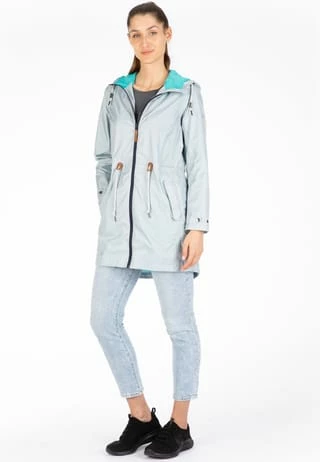 Regenmantel mit angeschnittener Kapuze