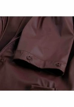 Der unifarbene Regenmantel ist aus receyceltem Polyester hergestellt. Er verfügt über eine abnehmbare Kapuze und ist mit Reflektoren ausgestattet. Die Bündchen an Ärmeln und Hals sind mit Fleece unterlegt. Alle Nähte sind verschweißt um das Eindringen von Wasser zu verhindern. Die Regenjacke verfügt über eine Wassersäule von 8.000 mm . Polyester 100%