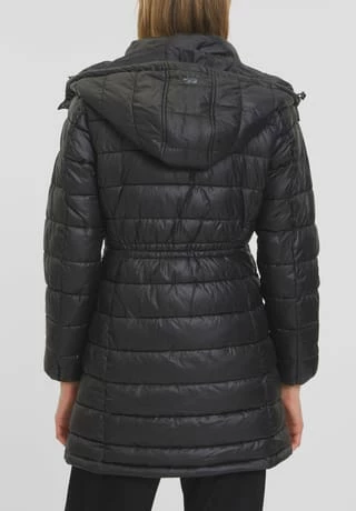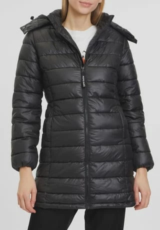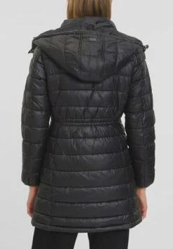 Dieser Mantel hält mit seiner wärmenden Wattierung schön warm und zeigt sich mit modisch gesteppten Nähten. Das Modell zeichnet sich zudem durch einen lässigen Stehkragen aus, an dem eine praktische Kapuze befestigt ist. Zum Öffnen und Schließen ist es versehen mit einem Reißverschluss. Details wie die beiden seitlichen Taschen runden den Style gekonnt ab.