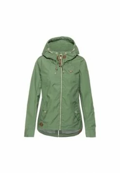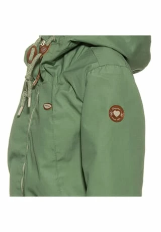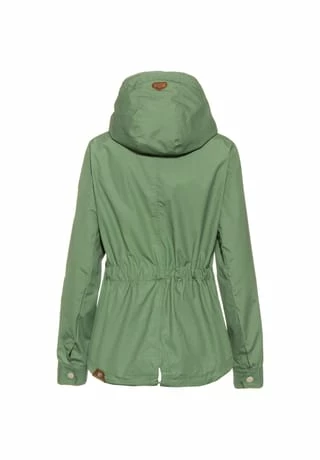 Wetterfeste Kapuzenjacke aus veganer Herstellung; Kapuze mit Kordelzug; Kragen mit Kinnschutz; hinterlegter Frontreißverschluss; vorgeformte Ärmel; Seitentaschen mit Druckknopfklappen; diverse Details aus Kunstleder; weitenregulierbarer Saum mit Kordelzug; Material I 65% Polyester, 35% Baumwolle, Material II 100% Polyester.