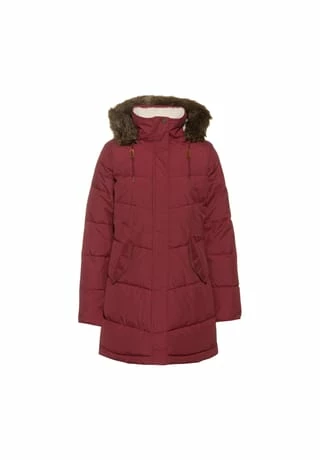 Wattierte Steppjacke mit hoher Wärmeisolation, durch Warmflight-Technologie; die DryFlight® Technologie macht die Jacke wasserabweisend und atmungsaktiv und erhöht so den Tragekomfort; geräumige Kapuze mit abnehmbarem Kunstfellbesatz; Stehkragen mit flauschigem Kunstfellbesatz und Kinnschutz; hinterlegter und mit Druckknopfleiste verdeckter 2-Wege-Frontreißverschluss; warm gefütterte Seitentaschen mit Klappen und Druckknöpfen; diverse Kunstleder-Details; Material I 100% Polyester, Material II 85% Polyacryl, 15% Polyester.
