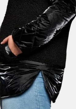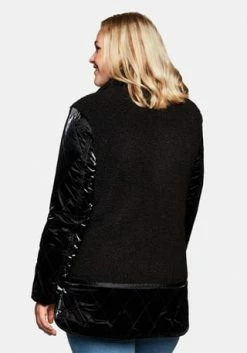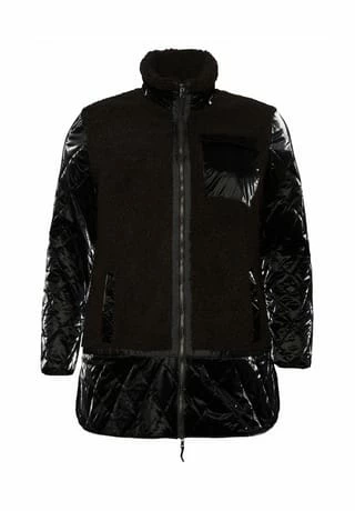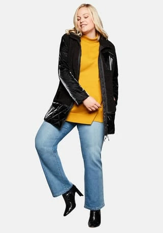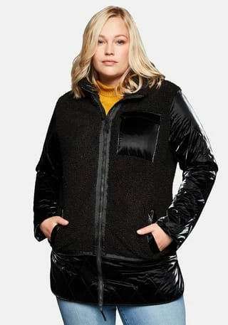 Wow – eine sheego Jacke, die sich mit einem gekonnten Materialmix aus glänzender, wattierter Rautensteppung und kuscheligem Teddyfell wirkungsvoll in Szene setzt. Ausgestattet ist sie mit einem praktischen 2-Wege-Reißverschluss bis zum Stehkragen und zwei Leistentaschen vorn. Schön warm hält auch das Teddyfell an der Innenseite des Stehkragens, das restliche Innenfutter setzt sich durch den Farbkontrast dekorativ ab. Für optimale Bewegungsfreiheit sorgen die gerundeten Seitenschlitze am Saum.