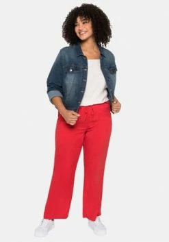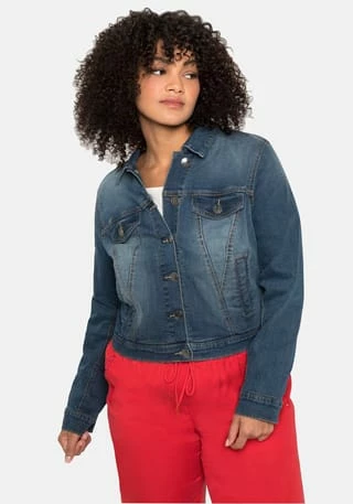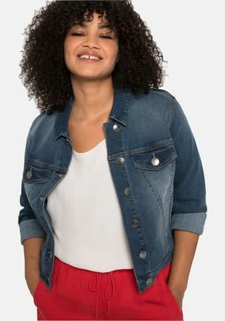 Diese Jeansjacke von sheego zeigt sich im kurzen, figurbetonten Schnitt. Ihre taillierte Form wird durch Teilungsnähte vorn und hinten zusätzlich unterstrichen. Für den klassischen Look sorgen die durchgehende Knopfleiste, die Leistentaschen sowie die Brusttaschen mit Patten und Knöpfen. In individueller Waschung.