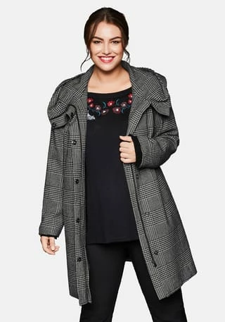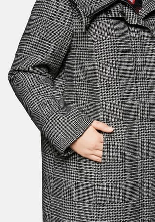 Kurzmantel im klassischen Karomuster von sheego. Der gepflegte Style präsentiert sich mit einem Stehkragen und einer großen Kapuze. Durch Druckknöpfe lässt sich der Reißverschluss verdecken. Schräge Eingrifftaschen befinden sich vorn. Die weiche, wärmende Qualität ist komplett gefüttert.