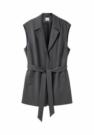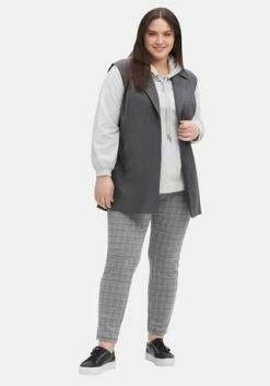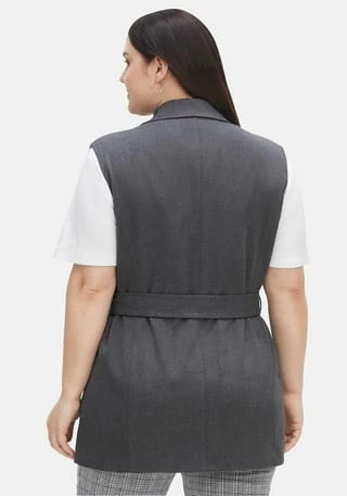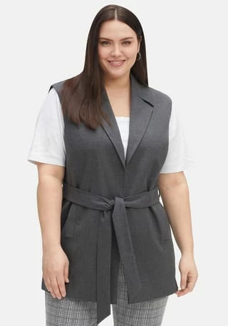 Die sheego Longweste verleiht dem Look dank Reverskragen und Bindegürtel eine schicke, gepflegte Optik. Teilungsnähte vorn und hinten formen eine optimale Silhouette, praktisch sind die seitlichen Leistentaschen.
