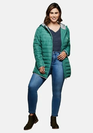 Praktisch, sportlich und modern zeigt sich die sheego Steppjacke. Die Kapuze ist innen mit Jersey gefüttert, dazu ist das Kontrastpiping farblich abgestimmt. Die Jacke besitzt einen durchgehenden Reißverschluss sowie zwei Taschen in der Seitennaht. Die wasserabweisende Qualität und die wärmende Wattierung machen sie zum idealen Stylingpartner für alle Aktivitäten.