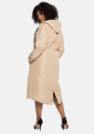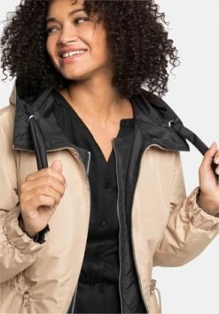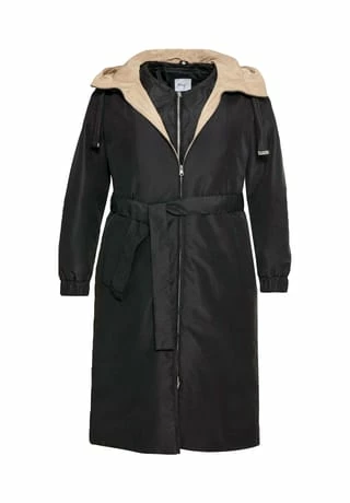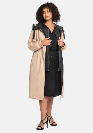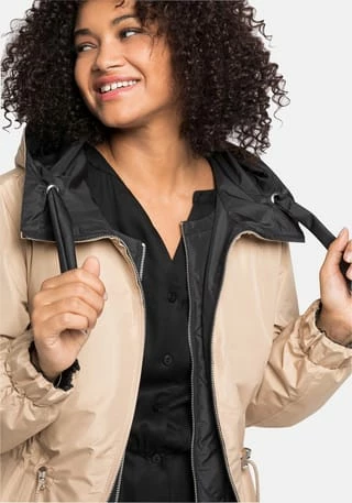 Ein sheego Mantel für jede Wetterlage, der durch viele Tragevarianten überzeugt: Durch die raffinierte Wendefunktion lässt er sich von zwei Seiten tragen. In Schwarz zeigt er sich mit Bindegürtel, in Beige ist er mit einem Tunnelzug gearbeitet. Im weiten Stehkragen ist eine Kapuze verstaubar, die Ärmel enden mit Gummibündchen. Praktisch ist auch der 2-Wege-Reißverschluss, mit dem der Mantel variabel geschlossen werden kann. Die Rückenpartie ist länger geschnitten und erhält durch den Schlitz Bewegungsfreiheit. Dazu kommt die herausknöpfbare Weste mit Zipper, die dank dekorativer Rautensteppung auch solo getragen eine gute Figur macht.