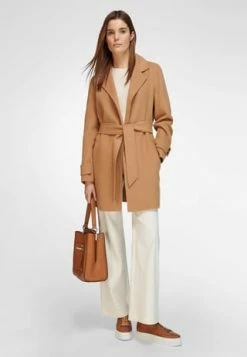 Mantel von UTA RAASCH in ultralässigem Style – ideal auch für den Übergang! Zeitloser Mantel in hochwertiger Qualität mit zahlreichen modischen Details: streckender Reverskragen, Gürtelschlaufen, Zierriegel am Ärmel mit 2 Druckknöpfen, schräge Leistentaschen und Bindegürtel. Offen getragen wirkt er besonders cool, mit geknotetem Bindegürtel betont er schön die Taille. 50% Wolle, 50% Polyester. Ungefüttert. Länge ca. 85 cm. Für diesen Mantel empfehlen wir chemische Reinigung.