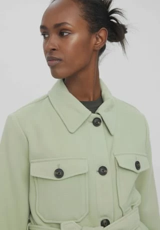 – Kurze Jacke- Hemdkragen- Zwei Brusttaschen- Knopfverschluss- Breiter Schnallengürtel am Bund.- Ärmelbündchen mit Knopf- Vordere Länge: 80 cm in Größe S- Das Model ist 175 cm groß und trägt Größe SKurze Jacke mit Knopfverschluss und Brusttaschen mit Knopfverschluss. Die Jacke hat zudem einen breiten Schnallengürtel an der Taille. Trag dazu Jeans und Stiefel für einen trendigen Look.MIT RECYCELTEM POLYESTERDieses Produkt enthält recycelten Polyester. Recycelter Polyester schont die natürlichen Ressourcen und reduziert Abfälle.